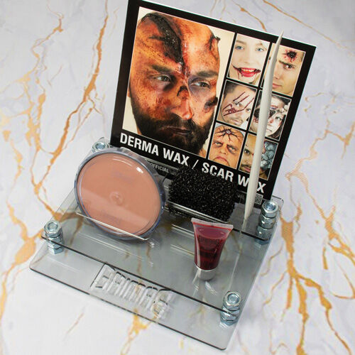 Expositor vacío de metacrilato para la presentación de los productos Grimas en el mostrador,