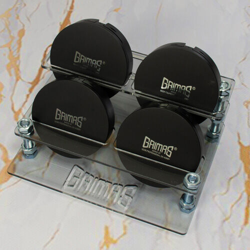 Expositor vacío de metacrilato para la presentación de los productos Grimas en el mostrador,