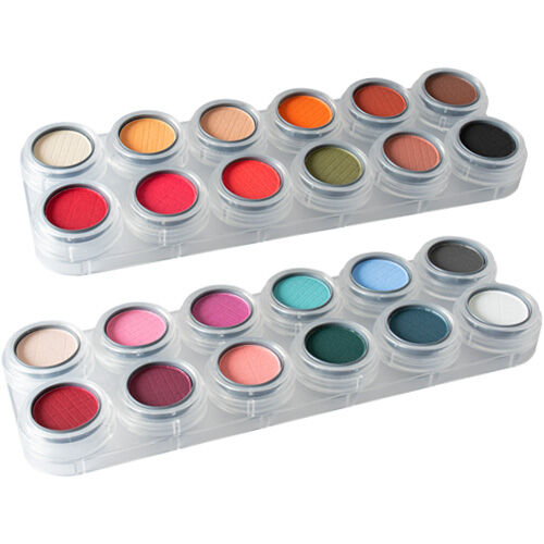 Polvos prensados con colores intensos usados para la sombra de ojos o colorete.