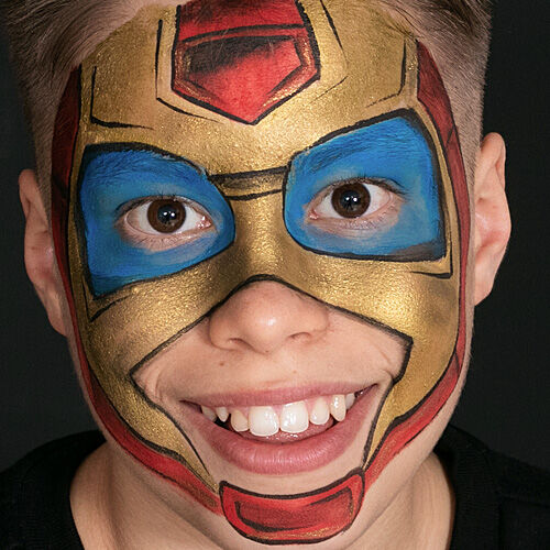 Estos alegres sets de pintura facial se componen de 4 colores de Water Make-up (2,5 ml). En el reverso de la caja hay 4 ejemplos de lo que se puede hacer con ella. Y si escaneas el código QR, inmediatamente terminarás con ideas aún más divertidas para pintar caras. ¿Estás buscando un regalo original para una fiesta infantil? Estos sets también son perfectos como regalo. El juego HERO contiene los colores negro (101), azul (301), rojo (505) y oro perlado (P702). Usa estos colores para jugar al héroe, o ten el coraje de inventar algo tú mismo.